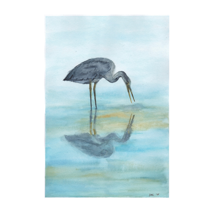 The Heron explores reflection, both literal and emotional. Standing above the water, the bird becomes a mirror to its own depth, its stillness a form of truth.