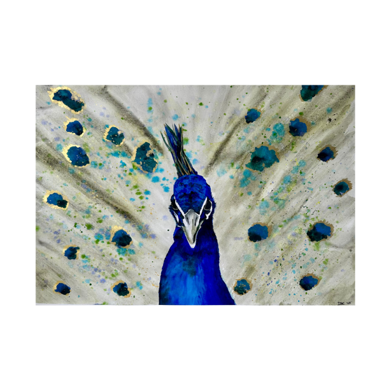 Painted in a moment of rediscovered pride, this peacock represents unapologetic self-expression. Its feathers rise like a breath held too long: a declaration that beauty is not vanity, but strength.